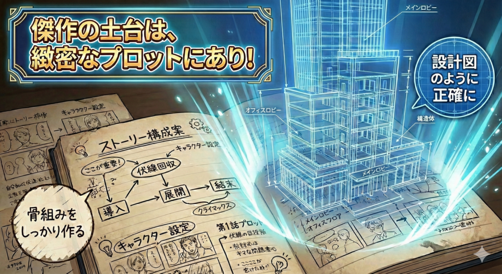しかし、ただ漫画にすればいいわけではありません。成功の鍵は、絵を描く前の「プロット(設計図)」にあります。今回は、プロの現場でも重視される「物語の設計図」の秘密を、専門用語を使わずに易しく解説します。