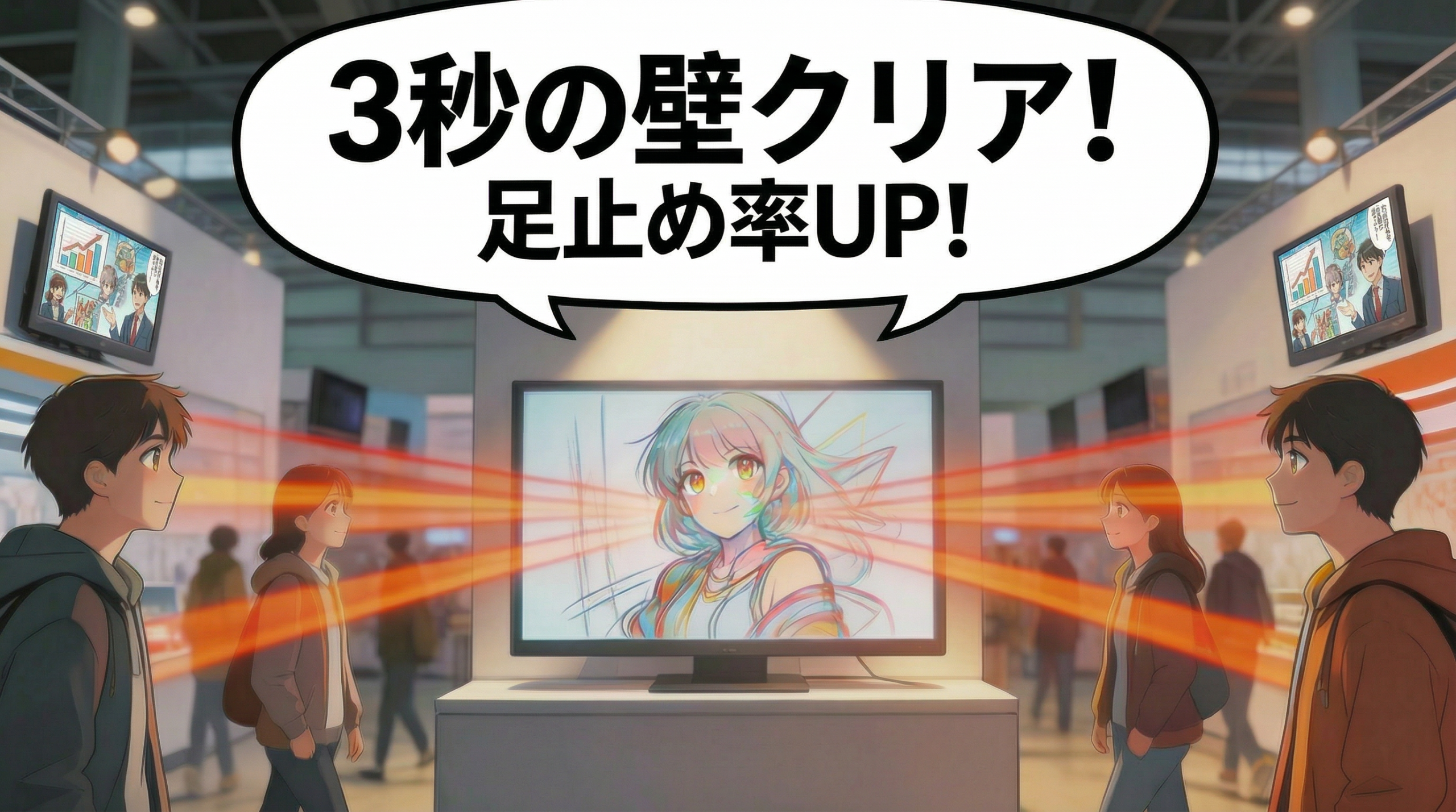 - 滞在時間の向上: 漫画動画の導入により、ブース内滞在時間が平均1.5〜2倍に向上した事例が多数報告されています。