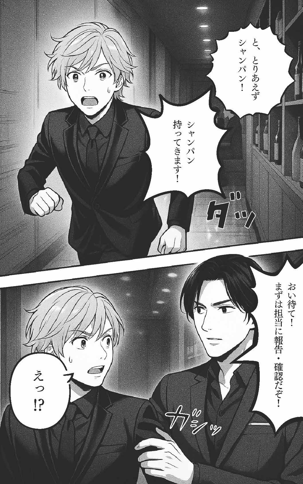 新人が体験しがちな“焦りとミス”をストーリー化することで、正しい順序を守る大切さを体験として理解できる構成にしました。